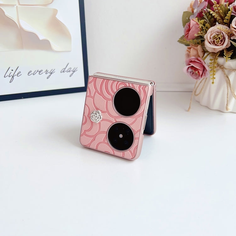 Funda para Teléfono Huawei P50 Pocket con Diseño de Cuadros 3D de Camelia (Rosa)