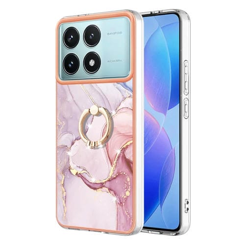 Funda para Teléfono Xiaomi Poco F6 Pro 5G con Galvanoplastia de Mármol Imd TPU y Soporte para Anillo (Oro Rosa 005)
