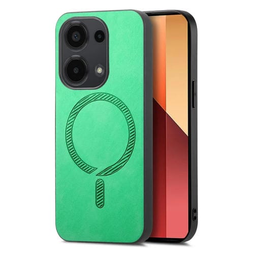 Funda para Teléfono Xiaomi Redmi Turbo 3 5G con Tapa Trasera de Pu Magsafe de Color Sólido Retro (Verde)