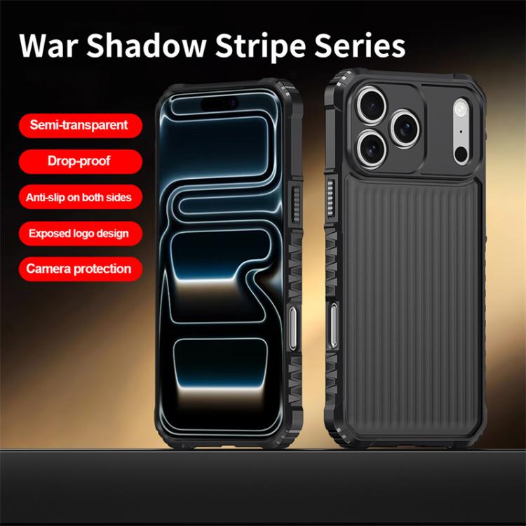 Funda protectora antigolpes War Shadow Stripe Series con airbag y acabado esmerilado para iPhone 17 Pro Max (Azul)