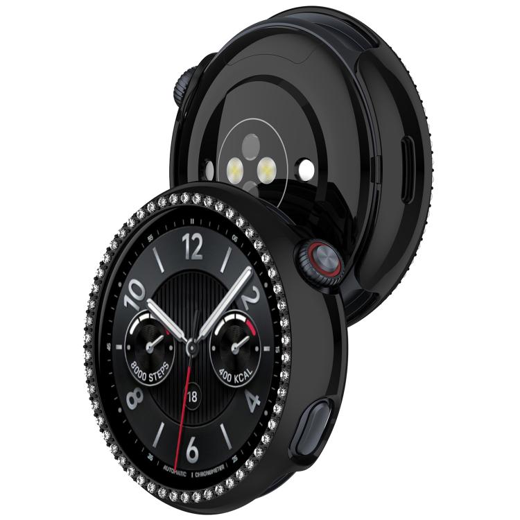Funda protectora para reloj Vivo Watch 5 de PC hueca con una sola fila de diamantes y media cobertura (negra)