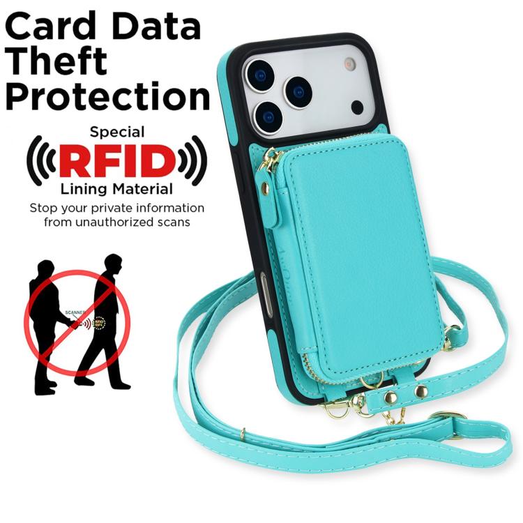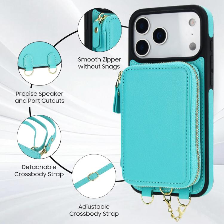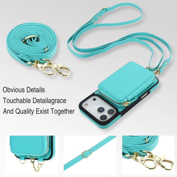Funda tipo cartera bandolera con cremallera 2 en 1 AwQuer para iPhone 17 Pro (Verde claro)