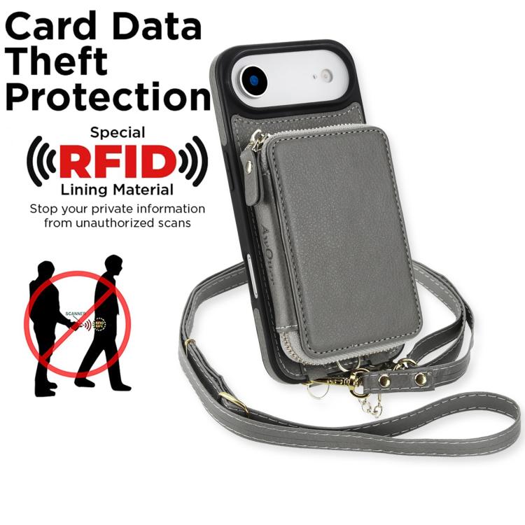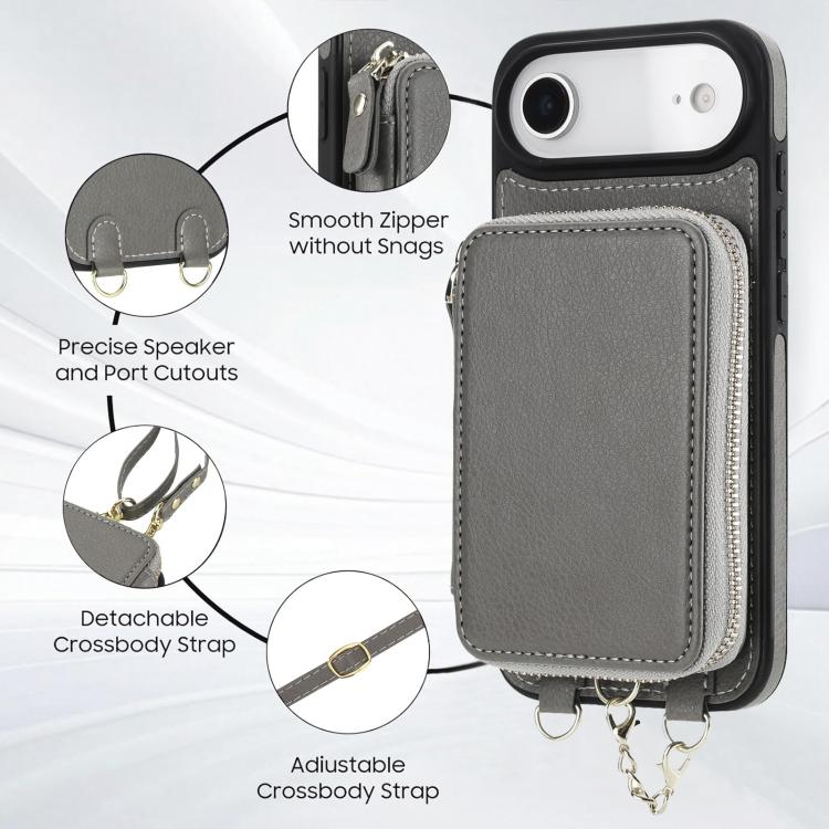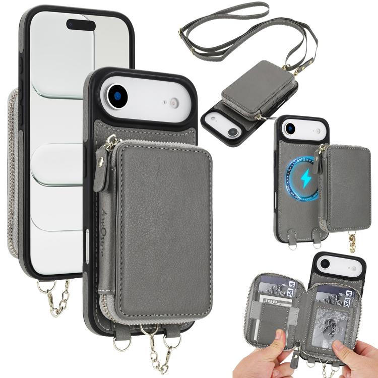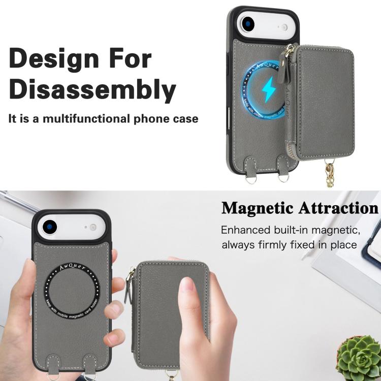 Funda tipo cartera bandolera con cremallera 2 en 1 AwQuer para iPhone Air (Gris)
