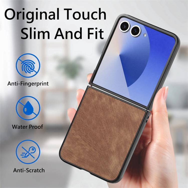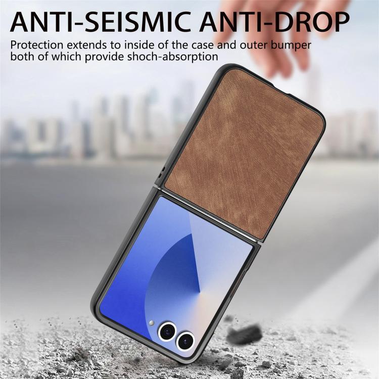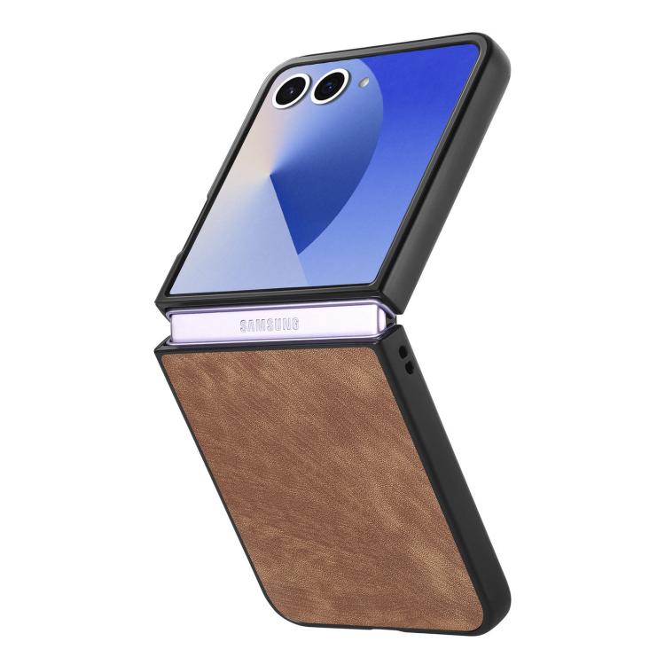 Funda trasera de cuero vintage para Samsung Galaxy Z Flip 7 5G (marrón)