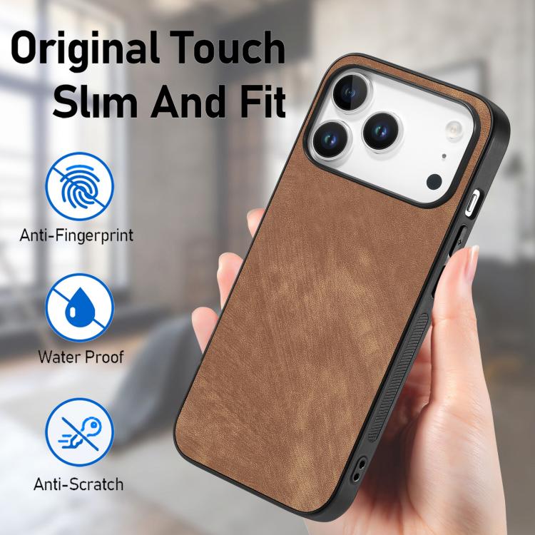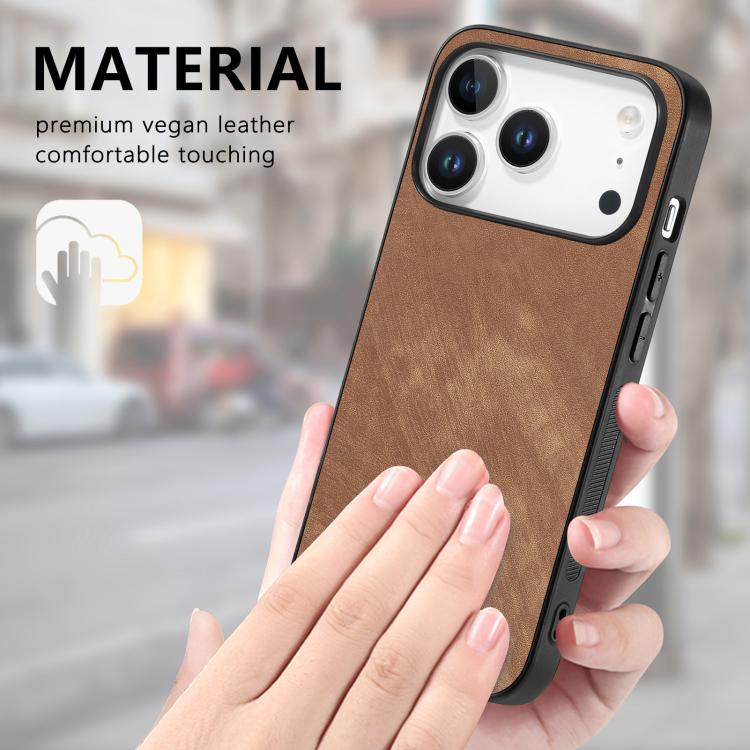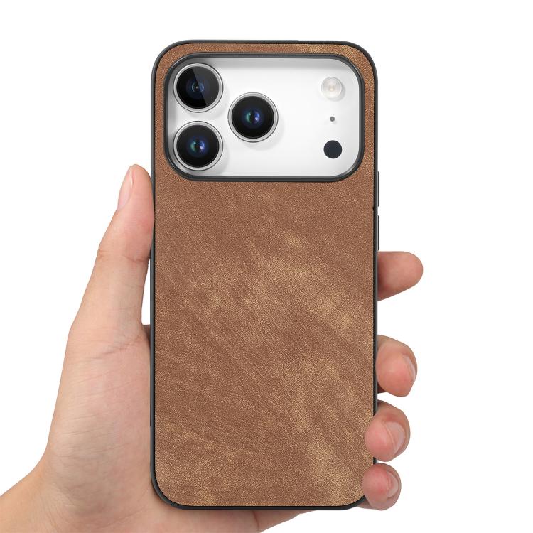 Funda trasera de PC de cuero vintage para iPhone 17 Pro Max (marrón)