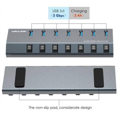 Hub USB 3.0 de 7 Puertos Wavlink UH3076 con Interruptor Independiente e Indicador LED (Enchufe Reino Unido)