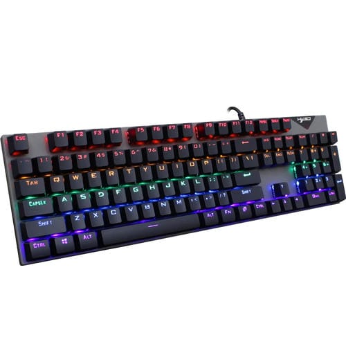 • 1x Teclado Mecánico HXSJ L300 104 Teclas con Puerto USB y Iluminación LED (Negro)