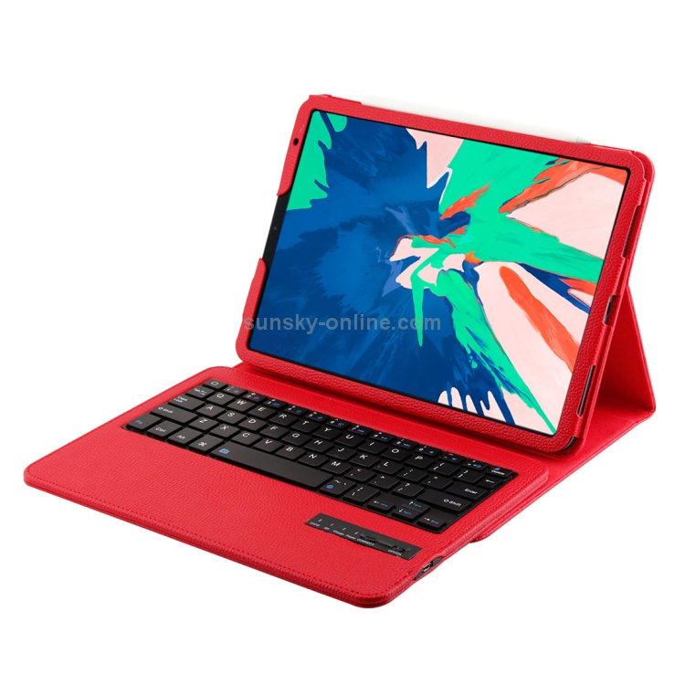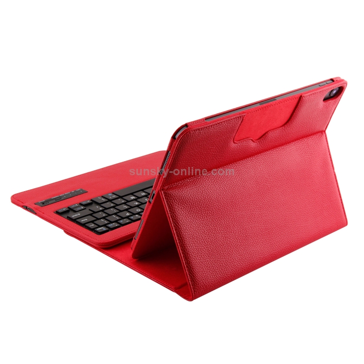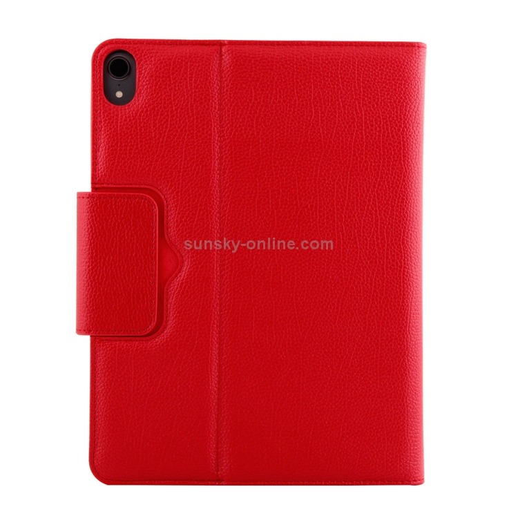Teclado ABS Bluetooth 3.0 desmontable + funda cuero textura Litchi para iPad Pro 11 (2018) con suspensión (Rojo)