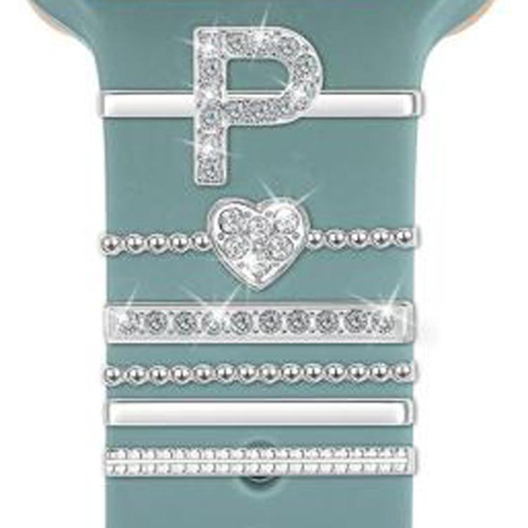 Juego de 6 correas de silicona universales para reloj inteligente, accesorios de metal decorativos, tamaño P (plata)
