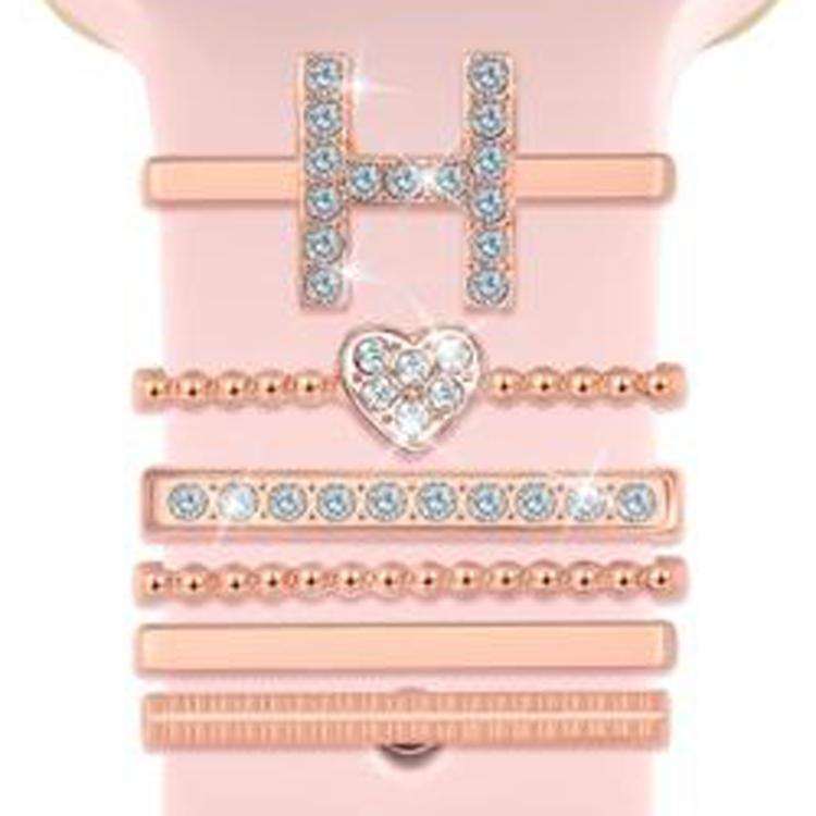 Juego de 6 correas de silicona universales para reloj inteligente, anillos decorativos de metal, tamaño: H (oro rosa)