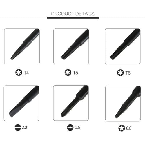 - Incluye 6 puntas magnéticas: T4, T5, T6, 2.0, 1.5, 0.8; diseño compacto y Portátil