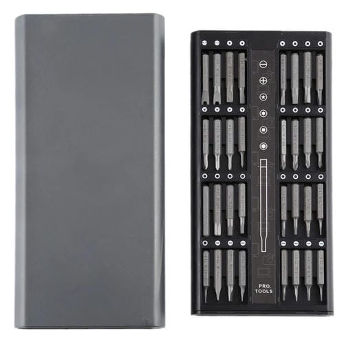 - Incluye destornilladores de múltiples tamaños y tipos: Phillips, Torx, Pentalobe, Hexagonal, entre otros (tamaños desde 0.6 hasta 4.0 mm y variantes específicas como PH00, T1, Y3.0, PZ0, etc.)