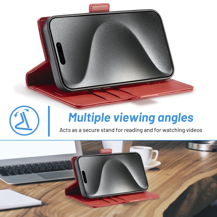 Funda de Piel Lc.Imeeke para iPhone 16 Pro con Ranuras para Tarjetas y Función Atril (Roja)