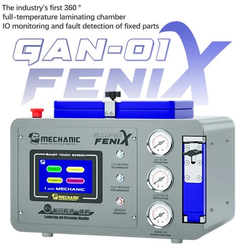 La Máquina Integrada Antiespumante de Laminación Mecánico GAN-01 Fenix es un equipo profesional diseñado para la laminación precisa y eficiente de Pantallas LCD y OLED de hasta 8 pulgadas. Con una potencia de 320 W y un sistema de calentamiento a temperatura constante de 360 grados, esta máquina garantiza un proceso uniforme y controlado para la unión de Placas de Cubierta de Vidrio sin burbujas. Su diseño incluye una Cámara antiespumante integral de aluminio que soporta alta presión para acelerar el proceso de desaireación. Equipado con una Pantalla Táctil inteligente a color de 4,8 pulgadas y Soporte multilingüe, permite un manejo intuitivo y ajustes personalizados mediante un regulador dual independiente. Compatible con Pantallas LCD y LCD Flexibles OLED, este dispositivo es ideal para usuarios que reparan por cuenta propia y profesionales en reparación de dispositivos Móviles. El equipo funciona con voltaje de entrada de CA 100 a 220 V y cuenta con enchufe para USA.