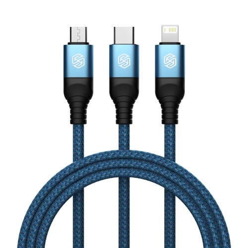 Cable 3 en 1 Nillkin Swift Pro 1M USB A a 8 Pines + Type-C + Micro USB (Azul)