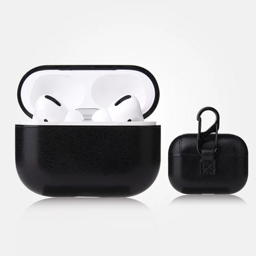 Funda Protectora para Airpods Pro Cuero PU Textura Caballo Loco Anti-Caída con Mosquetón (Negro)