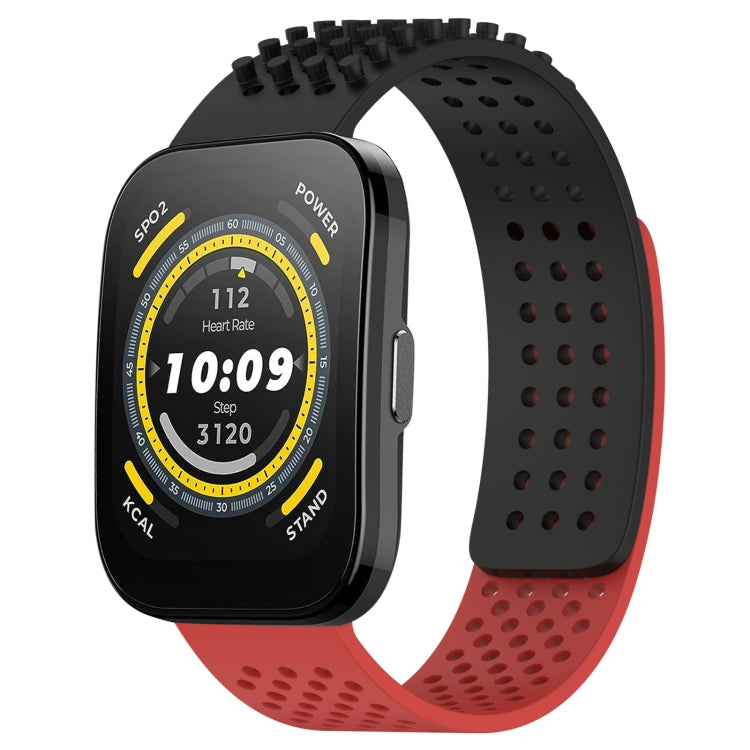 Correa de Reloj Amazfit Bip 5 Silicona Puntos 3D Transpirables Orificios 22mm (Negro + Rojo)