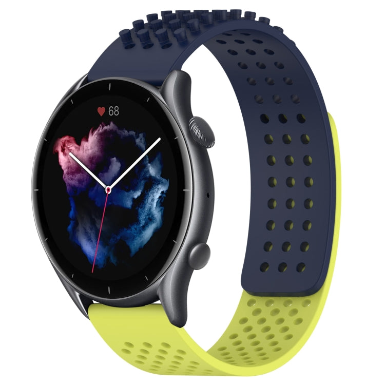 Correa de Silicona para Amazfit GTR 3 con Puntos 3D Transpirables y Orificios 22mm (Azul Medianoche + Verde Lima)