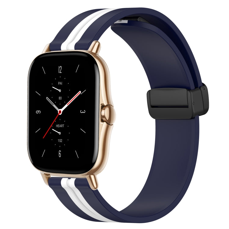 Correa de Silicona para Amazfit GTS 2 20mm con Cierre Magnético Plegable (Azul Medianoche + Blanco)