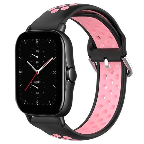 Correa de Reloj 20mm Amazfit GTS 2E Silicona Deportiva Transpirable Perforada (Negro + Rosa)