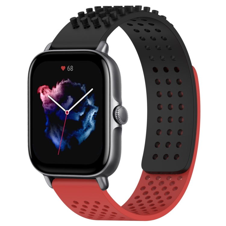 Correa de Reloj para Amazfit GTS 3 Silicona Puntos 3D Transpirable 20mm (Negro + Rojo)