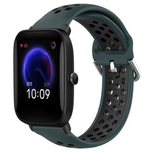 Correa de Reloj para Amazfit Pop 20mm Silicona Deportiva Transpirable Perforada (Verde Oliva + Negro)