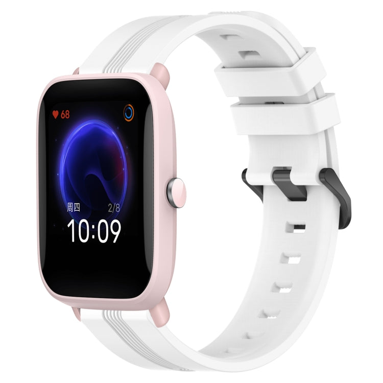 Banda de Reloj para Amazfit Pop Pro 20mm Silicona Rayas Cóncavas (Blanco)
