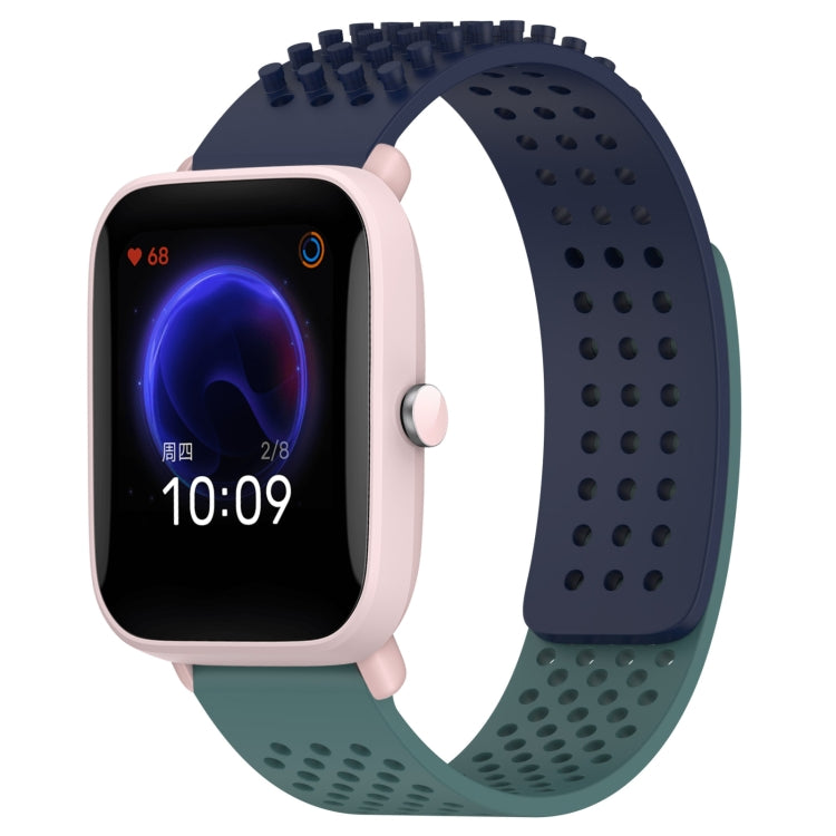 Correa de Silicona para Amazfit Pop Pro con Puntos 3D Transpirables y Orificios 20mm (Azul Medianoche + Verde Oliva)