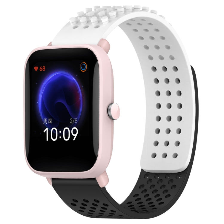 Correa de Reloj Amazfit Pop Pro silicona puntos 3D transpirable orificios 20mm (Blanco + Negro)