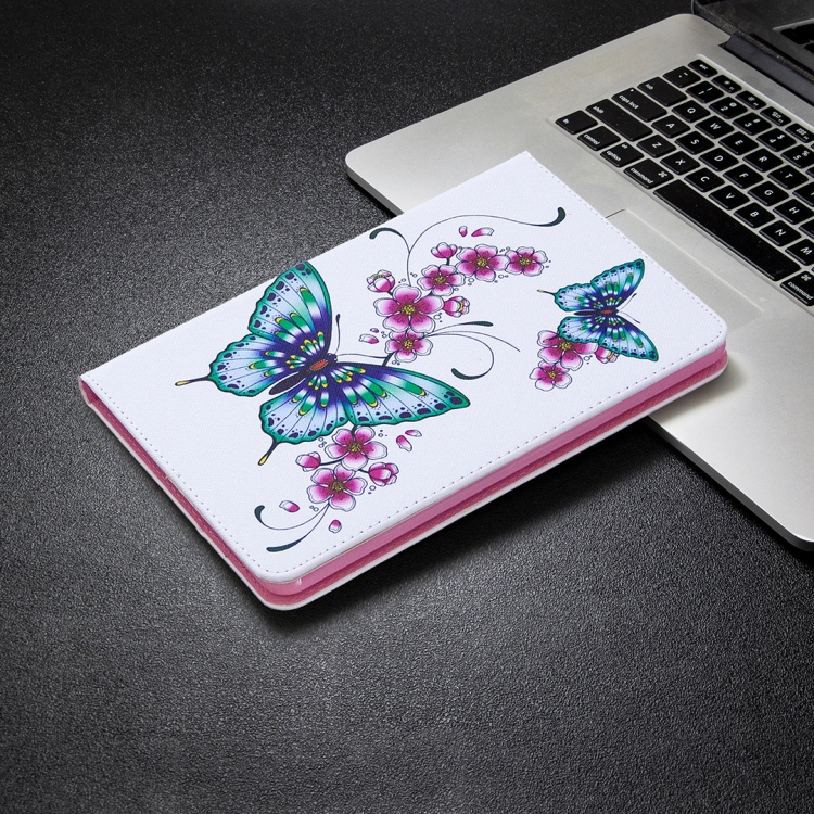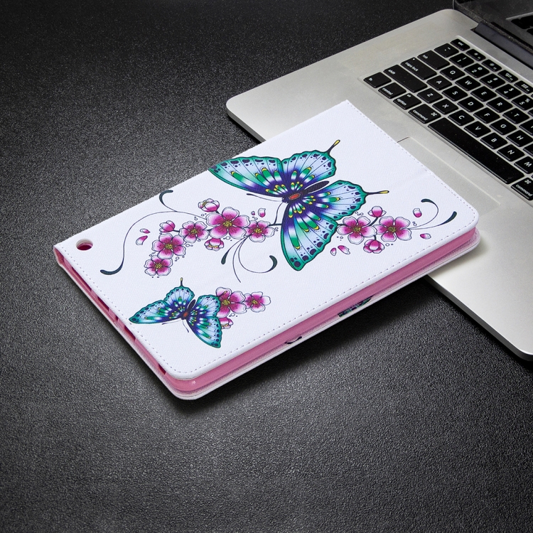 Funda de Cuero para Amazon Kindle Fire HD8 (2020) con Soporte, Ranuras y Billetera (Peach Blossom Butterfly)