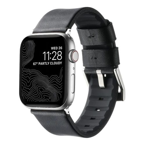 Correa para Apple Watch Se 2023 44mm Silicona Híbrida Cuero Genuino (Negro) con Hebilla Plateada