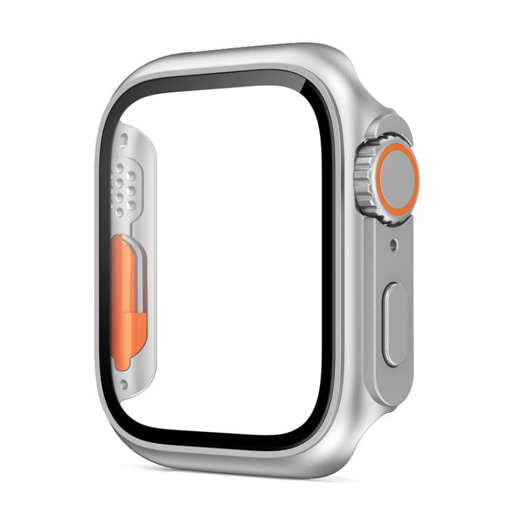 Para Apple Watch Series 6/5/4/SE de 40 mm xDfind, cambia a Ultra 49 mm, película de vidrio templado con cubierta de PC integrada (plata y naranja)