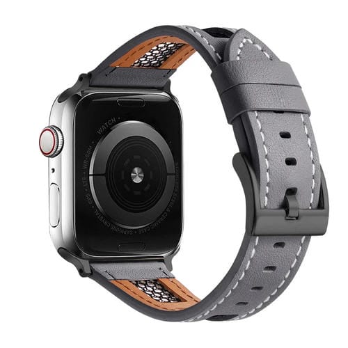 Correa de Reloj para Apple Watch Series 7 Cuero Genuino Piel de Becerro Malla 45mm (Gris)