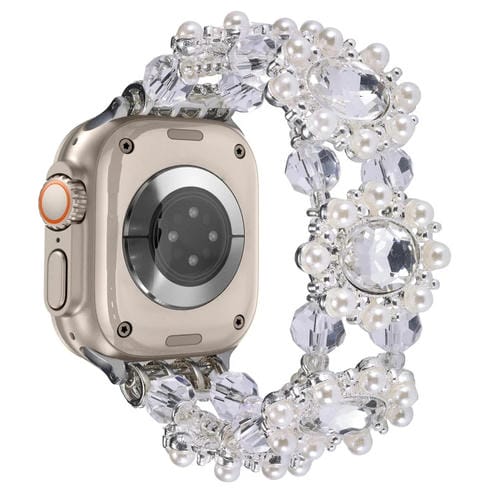 Correa para Apple Watch Ultra 49mm con Pulsera de Piedras Preciosas y Perlas (Blanco)