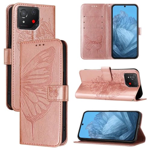 Funda de Cuero Asus Rog Phone 8 con Mariposa en Relieve (Oro Rosa)