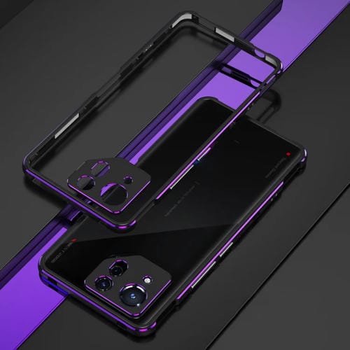 Protector de Lente + Estuche con Marco de Metal para Asus Rog Phone 8 (Negro Púrpura)