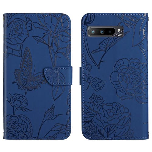 Funda de Cuero En Relieve para Asus Rog Teléfono 3 Zs661Ks Siente la Piel de la Mariposa (Azul)