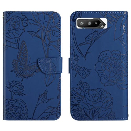Funda de Cuero En Relieve para Asus Rog Teléfono 5 Zs673Ks Siente la Piel de la Mariposa (Azul)