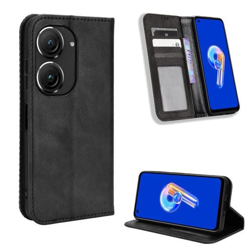 Funda de Cuero con Hebilla Magnética para Asus Zenfone 9 Textura Retro (Negro)