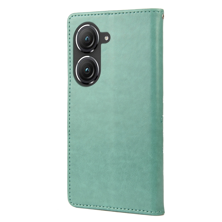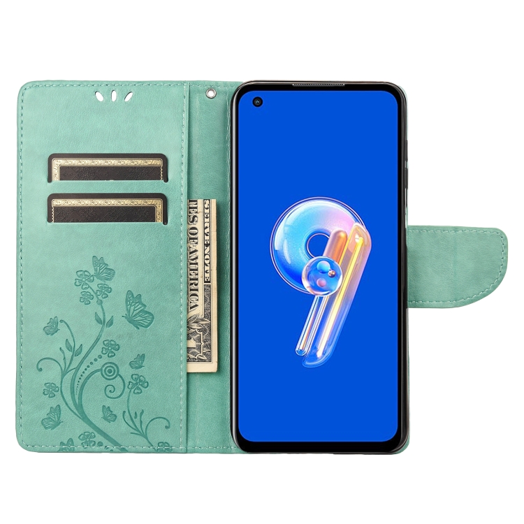 Funda de Cuero con Tapa para Asus Zenfone 9 Patrón de Flor de Mariposa (Verde)