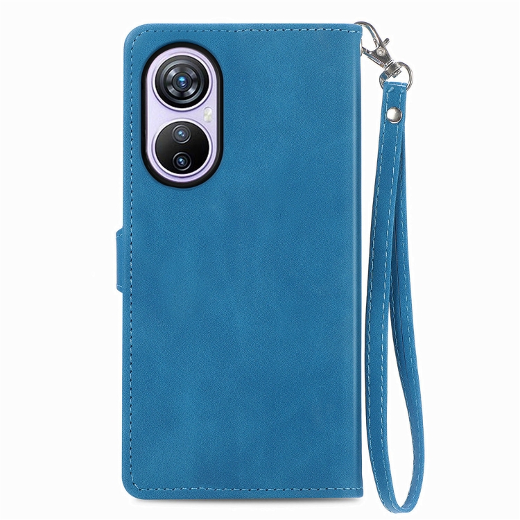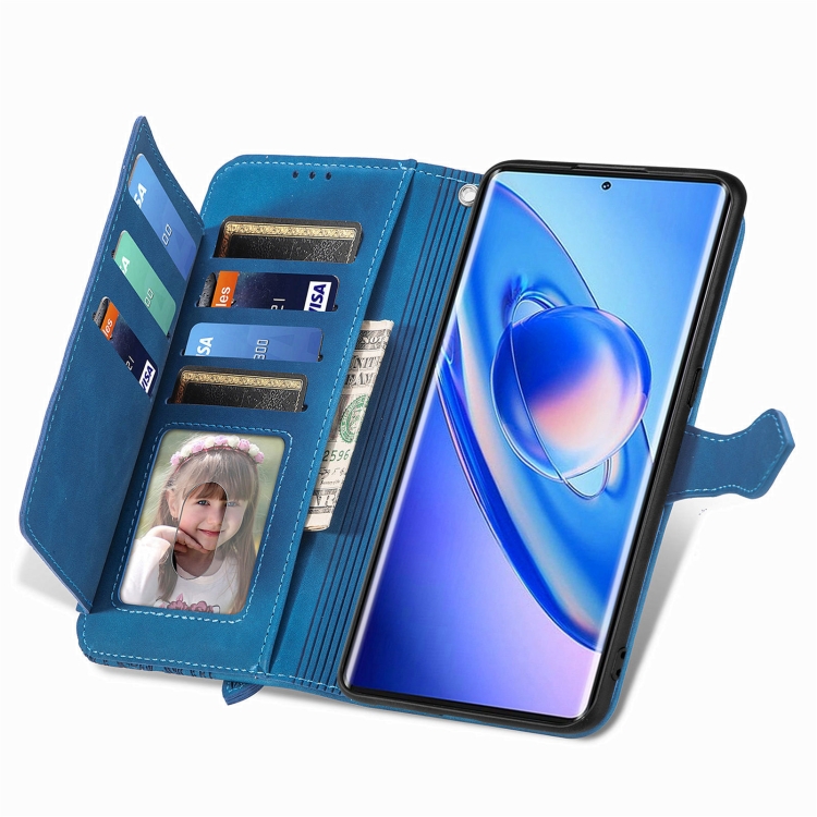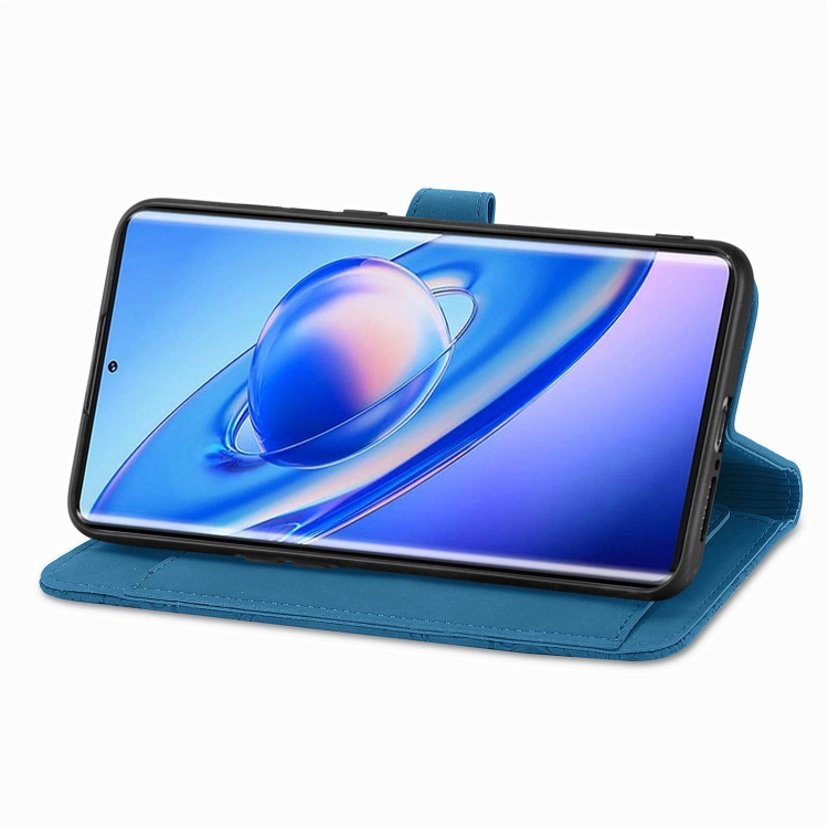 Funda de Cuero para BlackView A200 Pro con Cremallera y Flores en Relieve (Azul)
