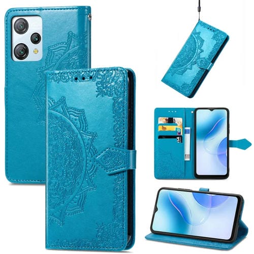 Funda de Cuero para BlackView A53 Mandala Flower en Relieve (Azul)