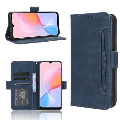 Funda de Cuero para BlackView A85 con Skin Feel, Textura Becerro y Ranuras para Tarjetas (Azul)