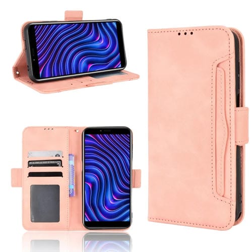 Funda de Cuero para Blu C5 Max 2022 con Ranuras para Tarjetas y Textura Skin Feel (Rosa)