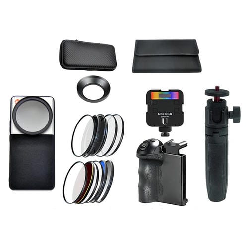 Conjunto de actualización SLR 6 en 1: estuche para teléfono, caja de almacenamiento, asa, luz de relleno, trípode, UV, tapa de lente de metal, cubierta de gran angular de metal, bolsa de almacenamiento con filtro a prueba de polvo