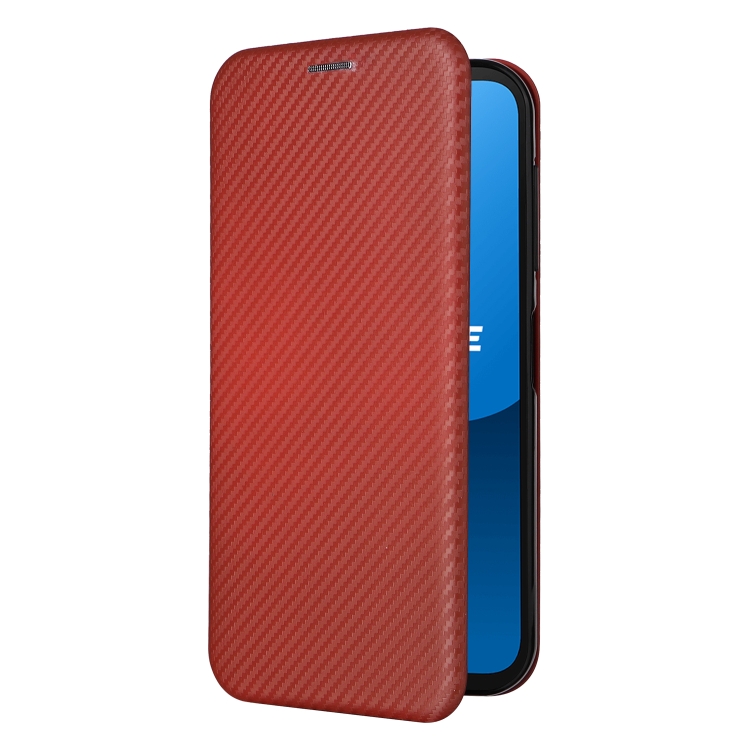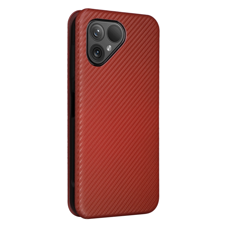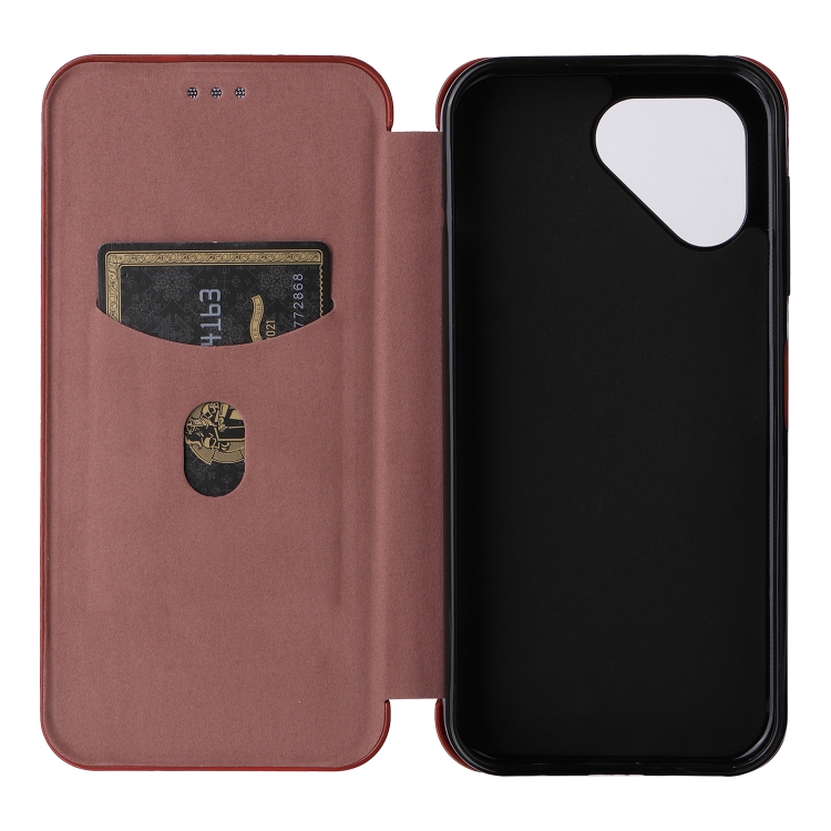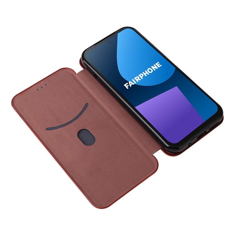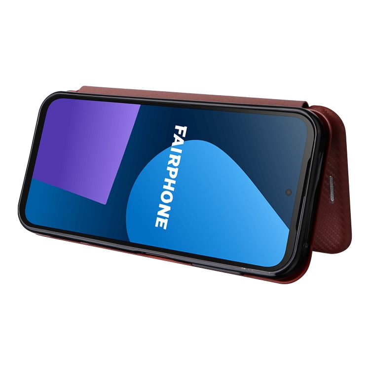 Funda de Cuero para Fairphone 5 con Tapa y Textura de Fibra de Carbono (Marrón)