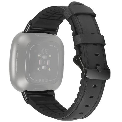 Correa para Fitbit Versa 3 Leather y Silicone Watch Band (Negro)