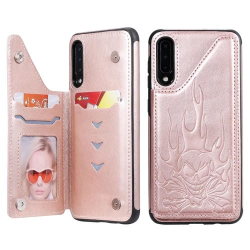 Estuche Protector Samsung Galaxy A50 Skull Head a Prueba de Golpes con Soporte y Ranuras para Tarjetas (Oro Rosa)