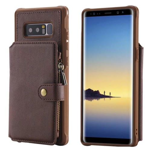 Estuche Protector Galaxy Note 8 con Cremallera Ranuras Tarjetas Soporte Fotos Billetera (Café)