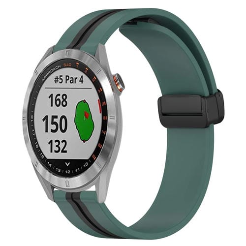 Correa de Silicona para Garmin Approach S40 con Cierre Magnético Plegable 20mm (Verde Oliva + Negro)